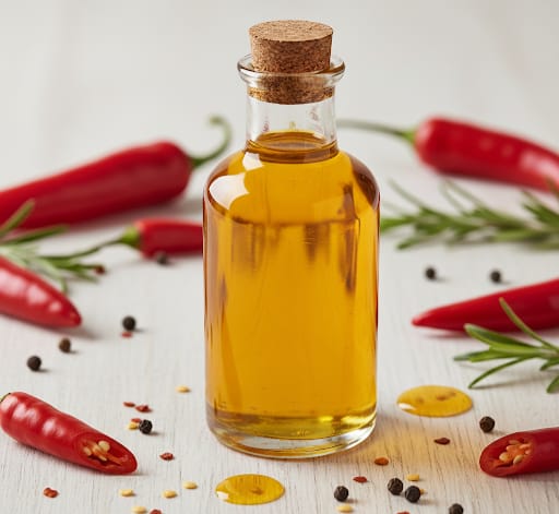 زيت حار منقوع بالفلفل الحار، مثالي للصلصات والتتبيلات.