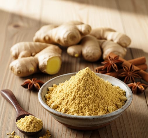 Spicy and zesty, commonly used in marinades, sauces, and health blends for its anti-inflammatory and digestive benefits.