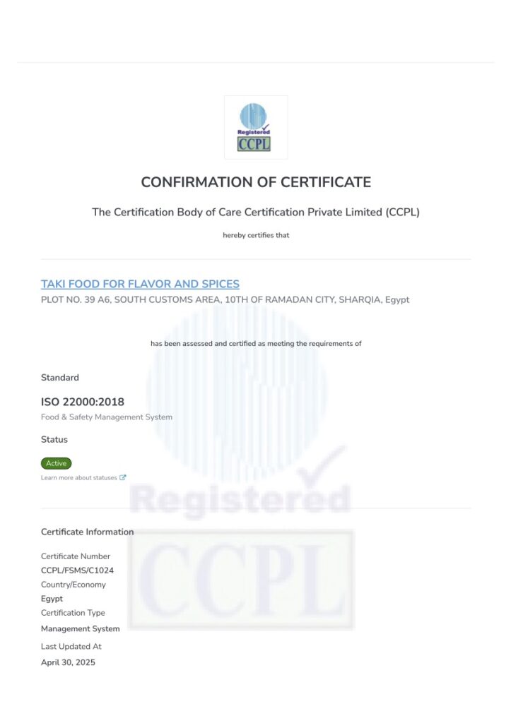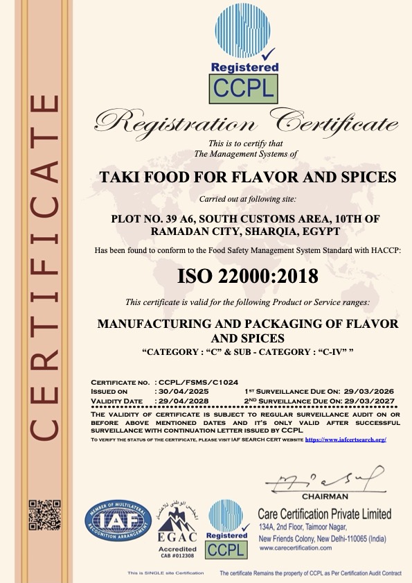 We are proudly ISO 22000:2018 certified, and approved by the Egyptian Food Safety Authority, ensuring that our operations meet both local and international food safety standards.